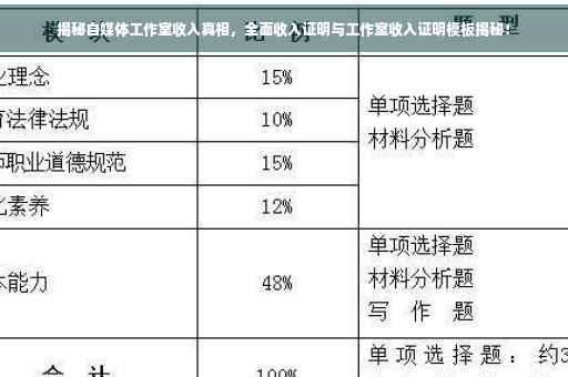 自媒体工作室的收入来源多样,但要想获得稳定的收益,需要持续创作优质内容,提高影响力,寻求商业合作等,本文为你揭示了自媒体工作室收入的真相,并提供了一份全面的收入证明,希望对你有所帮助,在自媒体行业的道路上,愿你勇往直前,收获满满!
