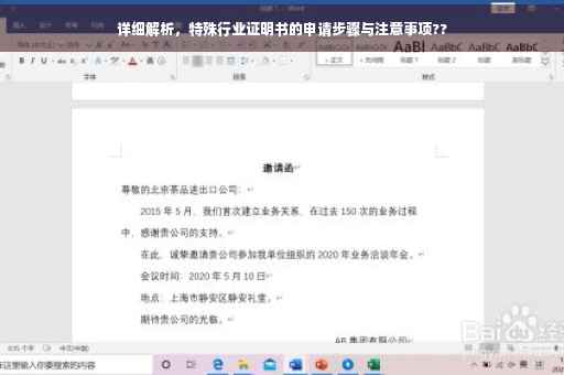 申请特殊行业证明书是开展特殊行业业务的必要步骤,希望本文的介绍能帮助您顺利完成申请,确保业务的合法运营,在申请过程中,请务必遵守相关规定,保持与部门的沟通,确保申请的顺利进行。