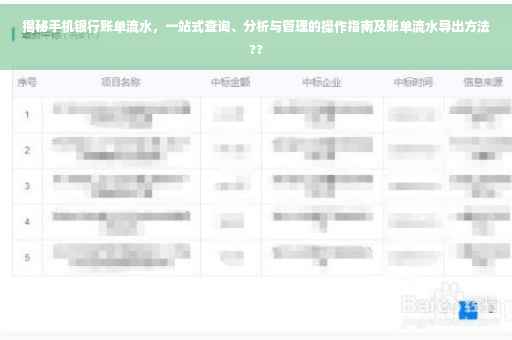 手机银行账单流水作为记录我们金融交易的重要载体,对于个人财务管理、理财规划和企业经营决策具有重要意义,通过查询、分析和管理手机银行账单流水,我们可以更好地掌握个人财务状况,制定合理的理财规划,并实现财富增值,希望本文能为您提供一站式查询、分析与管理手机银行账单流水的全方位指南。