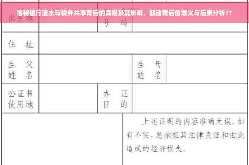 在当今社会,随着金融行业的快速发展和数字化时代的到来,银行流水与税务共享成为了人们关注的焦点,越来越多的人开始关注自己的资金流向以及税务部门如何掌握这些信息,本文将深入探讨银行流水与税务共享的背后真相及其影响,帮助读者更好地了解这一话题。