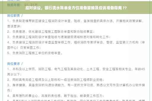 在现代社会,随着法治建设的不断完善,诉讼已成为解决纠纷的重要途径之一,对于银行或其他金融机构来说,面对涉及银行流水的诉讼时,做好应诉准备尤为关键,这不仅关乎机构的声誉和信誉,更关乎其经济利益和法律风险,本文将详细阐述如何全面做好涉及银行流水的应诉准备工作。