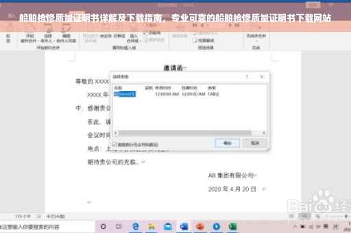 摘要:本篇文章详细介绍了船舶检修质量证明书的内容和作用,同时提供了下载指南。通过访问船舶检修质量证明书下载网站,用户可以轻松获取相关证明文件,确保船舶的安全运行和维护。文章简洁明了,旨在帮助用户了解并正确获取船舶检修质量证明书。