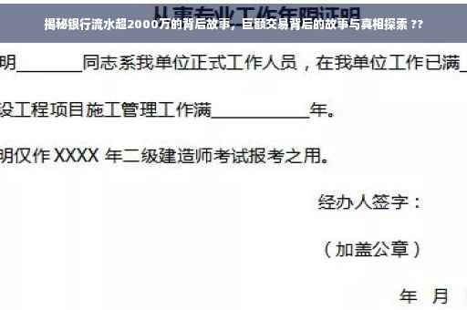 在当今社会,随着经济的不断发展和金融市场的繁荣,越来越多的人开始关注银行流水账单,银行流水账单作为个人经济活动的记录,其金额大小往往与个人经济实力息息相关,笔者了解到某人的银行流水账单超过2000万,引起了广泛关注,本文将深入探讨这一事件背后的故事,揭示银行流水账单背后的秘密。