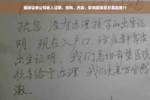 随着金融行业的迅猛崛起,证券公司的收入证明逐渐受到越来越多人的关注,究竟何为证券公司的收入证明?它包含哪些内容?本文将为您深入解析,并探讨其背后的多种影响因素。