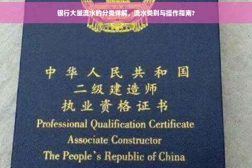 摘要:银行大量流水是指银行客户在一定时间内与银行发生的资金交易记录。根据交易性质和用途的不同,银行流水可以分为多种类型,如工资流水、转账流水、自存流水等。每种类型的流水都有其特定的特点和适用范围。了解银行流水的分类有助于个人和企业更好地管理资金,提高资金使用效率。