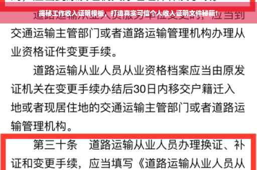 摘要:本文将为你揭示工作收入证明模板的制作过程,教你如何打造真实可信的个人收入证明文件。通过了解收入证明的结构和要点,以及模板中的关键信息,如姓名、职位、薪资等,你可以轻松制作出一份有效的工作收入证明样板,为你的个人信用和职业发展提供有力支持。