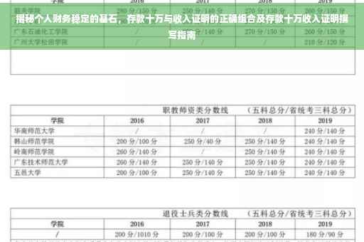 摘要:本文将探讨个人财务稳定的关键要素,重点介绍存款十万与收入证明的重要性。通过阐述存款的意义和如何积累存款,以及收入证明的作用和撰写方法,帮助读者了解如何稳固自己的经济基础。本文将揭示存款和收入证明在个人财务规划中的基石地位,为读者提供实用的建议和指导,以实现财务自由。