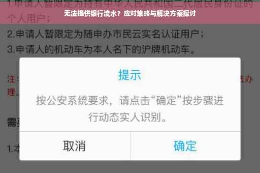 在当今社会,银行流水作为个人经济活动的记录,在很多场合扮演着重要的角色,无论是申请贷款、办理信用卡,还是进行某些金融投资,银行流水往往是一个必要的证明材料,在某些情况下,我们可能会遇到无法提供银行流水的问题,本文将探讨这种情况下的应对策略与解决方案。