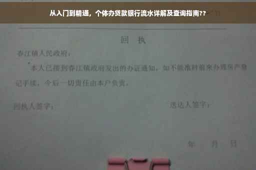 摘要:本文将详细介绍个体办贷款银行流水的相关知识,从入门到精通。内容包括如何查询个体办贷款银行流水,包括线上和线下查询方式。通过阅读本文,读者将了解银行流水在贷款申请中的重要性,以及如何有效查询和解读流水账单,从而更顺利地完成贷款申请。