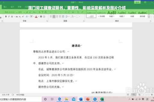 摘要:本文探讨了澳门劳工健康证明书的重要性及其影响深度。文章指出,劳工健康证明书对于保障劳工身体健康、预防职业病以及提高工作效率具有重要意义。本文还涉及澳门劳工健康证明书的图片内容,通过解析图片中的信息,进一步强调了健康证明书在澳门劳工群体中的实际应用和重要性。