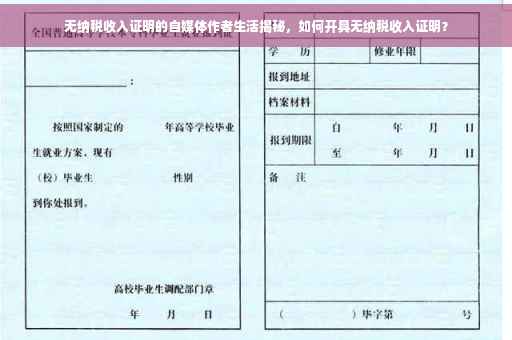自媒体作者生活揭秘:无纳税收入证明如何办理?本文将深入探讨无纳税收入证明的自媒体作者如何生活,并介绍如何开具无纳税收入证明。文章简洁明了,字数适中,旨在帮助读者了解这一群体的生活状态及解决相关证明问题。