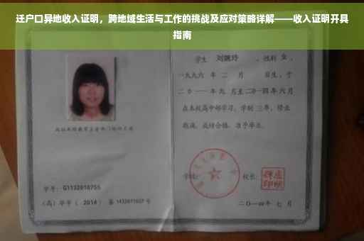 摘要:迁户口异地收入证明是跨地域生活与工作的现实挑战之一。为了顺利办理迁户口异地收入证明,需要提供相关证明材料,如工资流水、税单等,以证明个人在异地的稳定收入。面对跨地域生活与工作带来的挑战,应对策略包括提前了解迁入地的政策规定、做好职业规划、调整生活方式等,以确保顺利适应新的环境并享受美好生活。