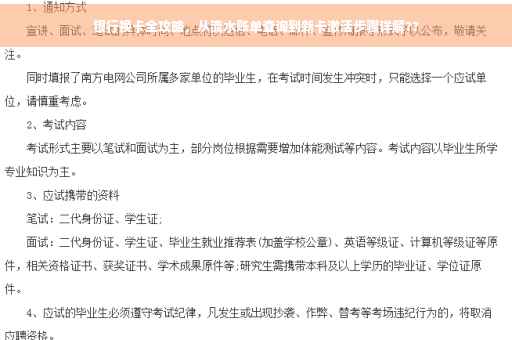 摘要:本文将详细介绍银行换卡流程,从查询流水账单到新卡激活全程。读者将了解如何查看银行流水账单,换卡的具体步骤和注意事项,以及新卡激活的方法和操作。本文旨在帮助读者顺利完成银行换卡过程,避免不必要的麻烦。