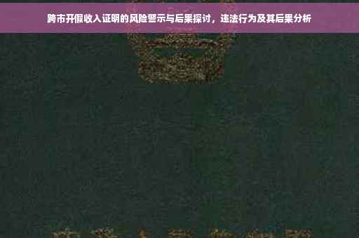 在现代社会,随着就业竞争的日益激烈和跨市工作的普及,一些人因各种原因需要开具收入证明,在某些情况下,出于各种原因,一些人可能会选择开具虚假的收入证明,即跨市开假收入证明,本文将探讨这一现象的背后原因,分析其潜在风险,并提醒广大市民谨慎对待。