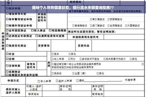 摘要:银行个人流水余额反映了个人财务健康状态的重要信息。通过查询银行个人流水余额,可以了解自己的收支情况、资金流动状况和存款余额等,从而合理规划个人财务。查询方法包括网上银行、手机银行、ATM机及银行柜台等多种途径。掌握这些方法,有助于更好地管理个人财务,实现财务自由。