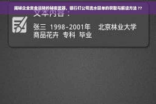 通过以上内容,希望读者对银行打公司流水回单有更深入的了解,在实际应用中,企业应充分利用银行打公司流水回单,提高资金管理水平,为企业的稳健发展保驾护航。