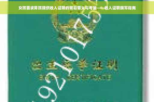 在当今社会,随着经济的发展和人们观念的转变,恋爱关系中的双方越来越注重彼此的财务状况,有时,女孩要求男孩提供收入证明成为了一种话题,这一要求在很多人看来似乎是一种物质的表现,但实际上背后隐藏着更深层次的含义与思考,本文将从多个角度探讨这一现象,并尝试解读背后的原因。