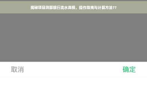 在当今社会,随着经济的不断发展和金融市场的繁荣,越来越多的人开始关注项目投资和理财,而在进行项目投资时,银行流水作为评估个人或企业信用状况的重要依据之一,其作用日益凸显,本文将详细介绍项目测算银行流水的重要性、操作流程、注意事项等方面,帮助读者更好地了解和使用银行流水,为项目投资提供有力支持。