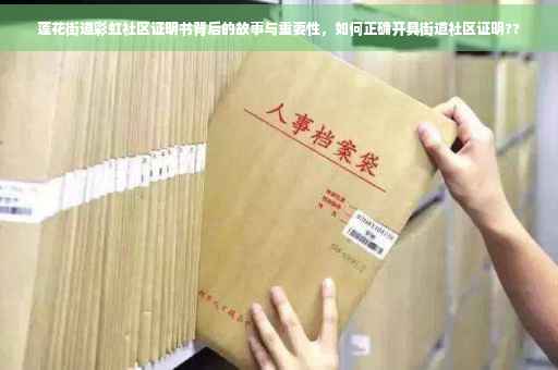 莲花街道彩虹社区证明书的重要性及其背后的故事。社区证明是居民参与社区事务、享受社区服务的重要依据。开具街道社区证明需要遵循一定程序,包括准备相关材料、向社区工作人员提出申请、审核等步骤。这一过程体现了社区管理的规范性和严谨性,也体现了社区对居民的关心和负责态度。