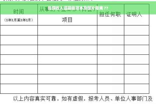 摘要:本文提供了一份低保收入证明函范本的示例内容,并附带了相关的图片。这份证明函范本适用于低保申请者向相关部门证明自己的收入状况时使用。具体内容简洁明了,包含了申请者的基本信息、收入情况以及证明人的签字和日期等要素。该范本可以作为参考,帮助申请者规范填写申请表格,提高申请成功率。