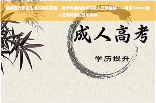 在现代都市的繁华背后,生活成本日益提高,经济压力逐渐成为人们肩上的重担,越来越多的人面临每月固定支出如月供的挑战,其中月供1万8千元对于众多年轻人来说,已成为一种生活常态,面对这一收入证明要求,背后隐藏着怎样的故事呢?让我们一同探寻现代都市生活的真实面貌。