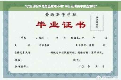毕业证明在教育局盖章难。教育局根本不会给你盖毕业证明的章。你在哪个学校毕业,是以你的毕业证为准。有了毕业证,就证明你在该校读书毕业,根本不需要开毕业证明。