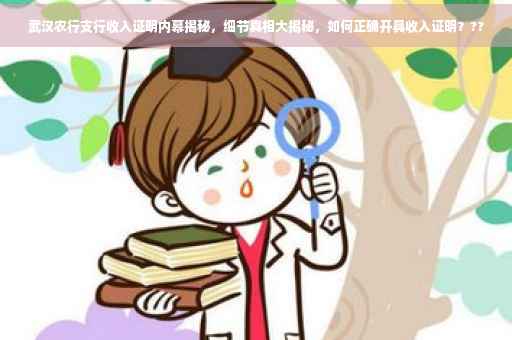 摘要:本文将揭示武汉农行支行收入证明的内幕细节与真相,包括收入证明的开具流程、所需材料以及可能存在的注意事项等。读者将了解到收入证明的重要性及其背后的细节,以便更好地处理个人财务和职业规划。武汉农行支行的收入证明开具方法也将得到详细解释。