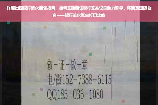 随着全球化的发展,越来越多的人选择出国留学、移民或开展国际业务,在这个过程中,银行流水作为个人经济能力的重要证明,其翻译准确性至关重要,本文将详细介绍如何正确翻译出国银行的流水,以帮助申请者顺利办理留学、移民等相关手续。