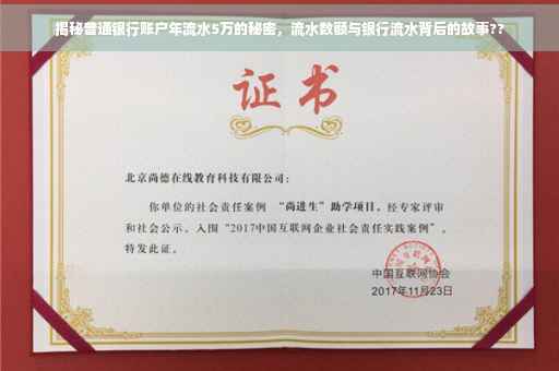 银行年流水,是指银行账户在一年内所有资金进出的总和,对于个人和企业来说,银行年流水是一个重要的财务指标,它反映了经济状况、资金流动性和信用状况,近年来,随着经济的发展和金融市场的繁荣,越来越多的人开始关注自己的银行年流水,本文将围绕银行年流水5万这一主题,探讨普通银行账户的流水秘密。