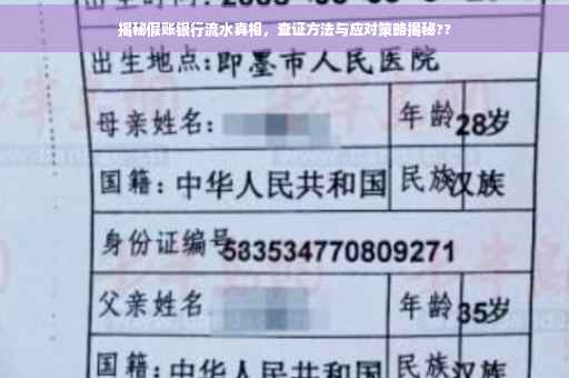 摘要:本文将揭示假账银行流水的真相,教你如何有效查证与应对。通过简单易懂的方式,介绍如何查询假账银行流水,帮助个人和企业保护自身权益,避免陷入财务陷阱。掌握这些方法,有助于及时发现异常,确保财务安全。