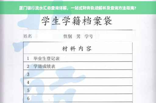 厦门银行流水查询功能为广大客户提供了便捷的财务管理途径,通过网上银行、手机银行及柜台查询,你可以轻松掌握个人财务轨迹,在解析流水的过程中,请留意注意事项,确保信息安全和账户安全,通过合理的财务规划,实现个人资产的透明化、高效化管理,希望本文能为你带来帮助,让你更好地管理个人财务。