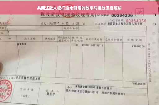 摘要:本文将探讨共同还款人银行流水背后的故事与挑战。通过深入分析,揭示流水账单的重要性及其背后的复杂性,包括可能出现的误解和争议。探讨如何妥善管理银行流水,确保还款过程的顺利进行,以及面对困难时如何采取有效措施应对。本文旨在为共同还款人提供指导,以更好地理解和处理银行流水相关事宜。