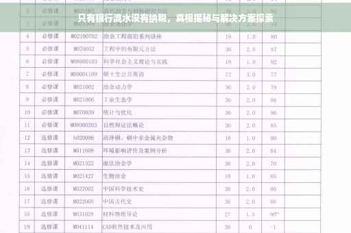 在当今社会,随着经济的不断发展和金融市场的繁荣,越来越多的人开始关注个人财务管理和税务合规问题,一些人可能面临只有银行流水却没有纳税的情况,这背后隐藏着多种原因和复杂情境,本文将围绕这一主题展开讨论,揭示真相并探讨应对之策。