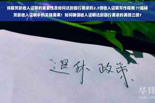 在当今社会,随着经济的不断发展和金融市场的日益繁荣,贷款已成为人们解决资金周转问题的一种常见方式,无论是购房贷款、购车贷款还是创业贷款,银行或其他金融机构在审批贷款时都会要求借款人提供收入证明,收入证明不仅关乎贷款审批的成败,更影响着贷款额度的高低,本文将详细介绍贷款收入证明的重要性以及如何达到银行要求的2.3倍收入证明标准。