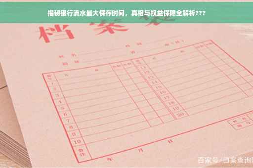 摘要:本文将探讨银行流水的最大保存时间,揭示真相并保障您的权益。文章将简要介绍银行流水的重要性,阐述银行流水保存时间的普遍规定和实际情况,同时提醒读者关注个人权益保障,如查询流水记录等。本文旨在帮助读者了解银行流水的保存时间,以便更好地管理个人财务和保障自身权益。
