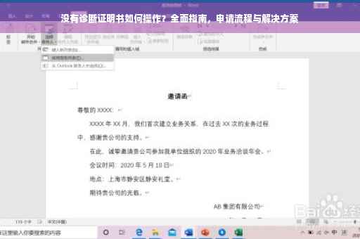在这个信息高度发达的时代,诊断证明书的重要性愈发凸显,无论是健康保险理赔、工作请假还是其他场合,诊断证明书往往扮演着重要的角色,有时候我们可能会遇到一些突发情况,急需证明却苦于没有诊断证明书,这时该如何处理呢?本文将为您详细解析没有诊断证明书的应对策略及申请流程。