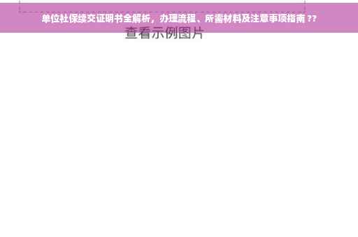 随着社会保障问题受到越来越多人的关注,单位社保续交证明书作为证明个人社保缴纳情况的重要文件,其办理流程、所需材料以及注意事项等也备受关注,本文将详细介绍单位社保续交证明书的办理流程、所需材料以及注意事项,并阐述其重要的作用与意义。