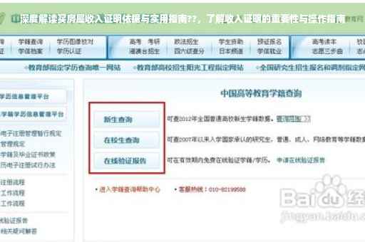 在购房过程中,收入证明是不可或缺的一环,本文将通过详细解读买房屋收入证明的依据,帮助购房者更好地理解其重要性并顺利办理购房手续。