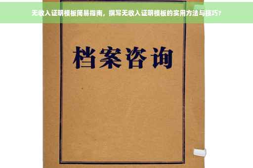 摘要:本简易指南教你如何写无收入证明模板。对于没有稳定收入来源的人群,无收入证明模板是一种有效的证明方式。本指南将为你提供简洁明了的步骤和要点,帮助你轻松完成无收入证明模板的撰写。无论你是因为失业、待业或其他原因无法提供收入证明,本指南都将为你提供实用的建议和帮助。