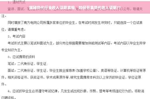 揭秘贷代行业收入证明真相,了解贷代收入证明如何开具。贷代收入证明是贷款过程中的重要环节,涉及个人信用评估和贷款额度审批。本文将指导你如何正确开具收入证明,揭示行业内常见的收入证明真相,助你顺利获得贷款,避免不必要的麻烦。关注本文,轻松掌握贷代收入证明的关键信息!