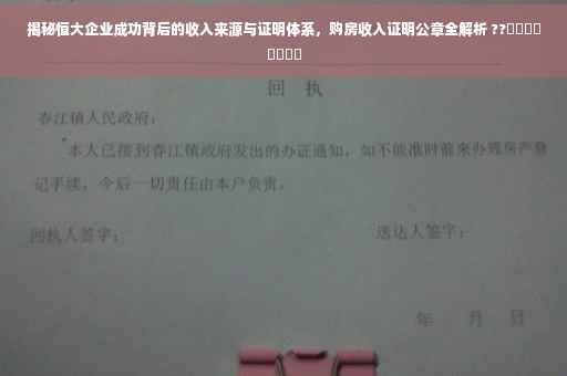 摘要:恒大收入证明章揭示了企业成功的收入来源与证明体系。通过购房收入证明公章,展现了恒大在企业运营中的稳健财务表现。其收入来源多样且具备可持续性,证明体系完备,为企业的发展和成功提供了坚实的财务基础。