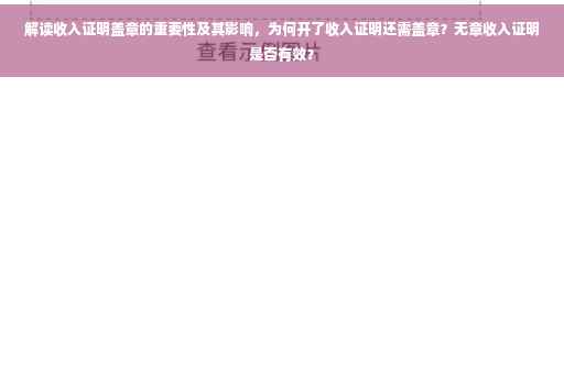 在现代社会,随着就业市场的日益竞争和职场环境的不断变化,越来越多的人开始关注自己的职业发展和福利待遇,收入证明作为展示个人经济能力的重要文件,在求职、贷款、信用卡申请等方面扮演着举足轻重的角色,有时我们会遇到这样的问题:收入证明已经开了,却因为没有盖章而引发一系列问题,收入证明为何需要盖章?盖章的作用是什么?没有盖章会带来哪些影响?本文将围绕这些问题展开讨论。
