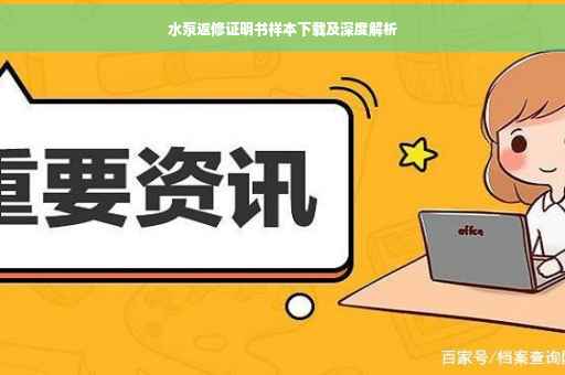 随着工业化的快速发展,水泵作为重要的流体输送设备,广泛应用于各个领域,在使用过程中,由于各种原因,水泵可能会出现故障或损坏,需要进行返修,而水泵返修证明书是证明水泵维修过程及质量的重要文件,本文将为大家提供水泵返修证明书样本下载链接,并对样本进行详细分析,以便大家了解并正确填写。
