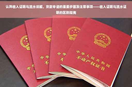 摘要:本文介绍了申请贷款过程中的重要步骤和注意事项,特别是认购收入证明与流水详解。文章指出,认购收入证明和流水证明是贷款申请过程中的关键材料,两者在内容和用途上存在区别。申请人在准备材料时需仔细核对,确保信息的真实性和完整性。本文还提醒申请人注意一些贷款申请的注意事项,以确保顺利获得贷款。