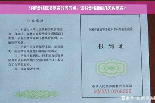 合格证书的颁发时间因多种因素而异,了解一般流程和影响因素有助于我们大致把握证书的颁发时间,关注证书的查询方式和注意事项也是非常重要的,希望本文能够帮助大家更好地了解合格证书的颁发时间节点问题,为生活和工作提供便利,不同的行业和机构可能存在差异,建议大家在办理时具体咨询相关机构了解详细的证书颁发时间和流程。