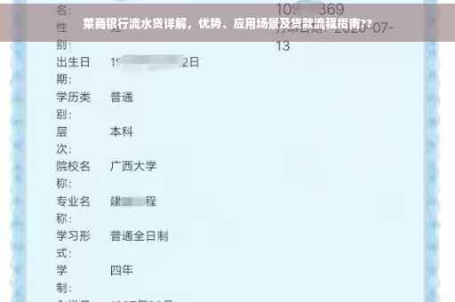 随着金融科技的飞速发展,银行业不断创新服务模式,以更好地满足市场需求,莱商银行作为其中的佼佼者,其推出的流水贷产品引起了广泛关注,本文将对莱商银行流水贷的特点、优势、应用场景、申请条件及流程,以及可能存在的风险进行详尽解析,以帮助读者更好地了解这一金融产品。