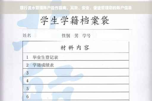 摘要:本操作指南旨在帮助用户高效、安全、便捷地管理银行流水账户信息。通过本指南,您将了解如何轻松管理您的银行流水账户,包括账户开设、资金操作、交易记录查询等方面。我们强调账户信息的重要性,并提供详细的步骤和注意事项,以确保您的账户安全并充分利用银行流水服务。