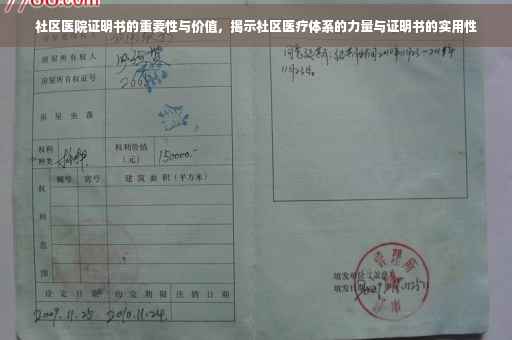 社区医院证明书在社区医疗体系中具有重要意义和价值,它们不仅为患者提供医疗保障,还为居民的健康管理、政策申请等方面提供重要依据,随着社区医疗体系的不断完善和发展,社区医院证明书的作用将更加凸显,我们应当充分利用和发挥社区医院证明书的功能,提高居民的健康水平,促进社会和谐稳定。