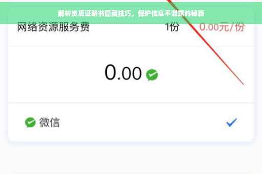摘要:关于隐藏资质证明书及其信息的方法,重点在于保护个人信息和文件安全。可以通过遮盖关键信息、使用加密技术、妥善保管文件等方式进行隐藏。应提高信息安全意识,避免泄露个人信息。不建议随意隐藏资质证明信息,必要时应在合法合规的前提下进行操作。