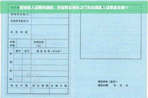 摘要:本文将揭示收入证明背后的秘密,教你如何开具有效的收入证明并开启财富增长之门。通过了解收入证明的重要性、出具流程和注意事项,你将能够更好地管理个人财务,实现财务自由。阅读本文,你将掌握如何合理呈现个人收入状况,为未来财富增长打下坚实的基础。